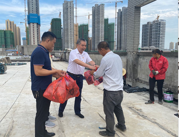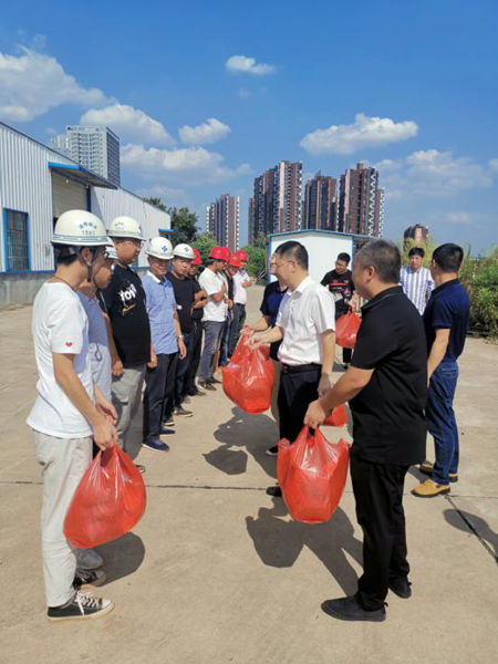 “火熱的天氣,你們堅守戶外一線,為衡陽的建設(shè)和發(fā)展付出了辛勤的汗水,大家辛苦了!”8月24日下午,黨委書記、董事長劉軍同志來到幸福河項目建設(shè)工地,看望慰問奮戰(zhàn)在高溫一線的勞動者,切實落實市總工會衡工發(fā)〔2020〕23 號文《關(guān)于開展 2020 年“夏送清涼”活動的通知》工作安排,把黨委和工會的關(guān)愛和“清涼”一起送到一線職工、農(nóng)民工的心坎上。