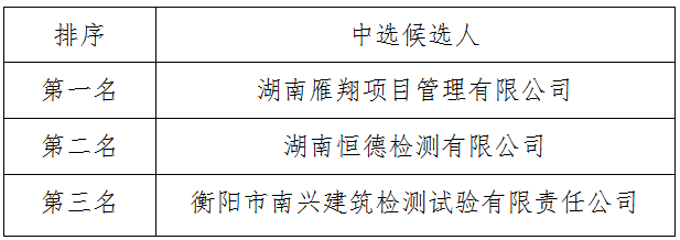 衡陽市雁城東路(東方里街-東二環(huán))及雁城東路與建湘連接線新建工程監(jiān)理服務內部比選中選候選人公示