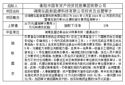 湖南弘能新能源科技有限公司投資及運營審計項目抽取結(jié)果公示